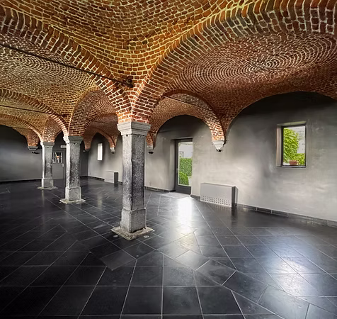 Murs en brique et voûtes authentiques pour un accueil soigné, une réception intimiste ou un espace de pause.